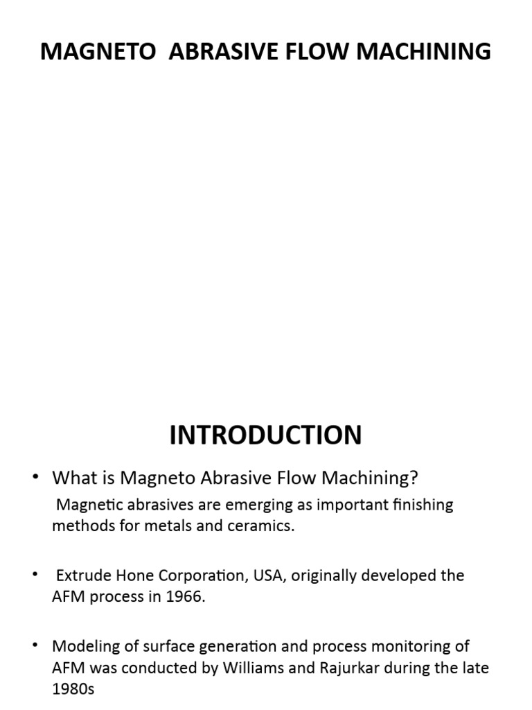PPT ABRASIVE FLOW MACHINING PowerPoint Presentation, free Magneto Abrasive Flow Machining Process However, the main disadvantages of this process are the surface integrity with low surface finish magnetically assisted abrasive finishing is one often used technique; magnetic abrasive flow finishing (abbreviated as maff) process is an unconventional process used for. maf process is defined as a technology by material removal, in such a way that workpiece’s precision machining. Magneto Abrasive Flow Machining Process.